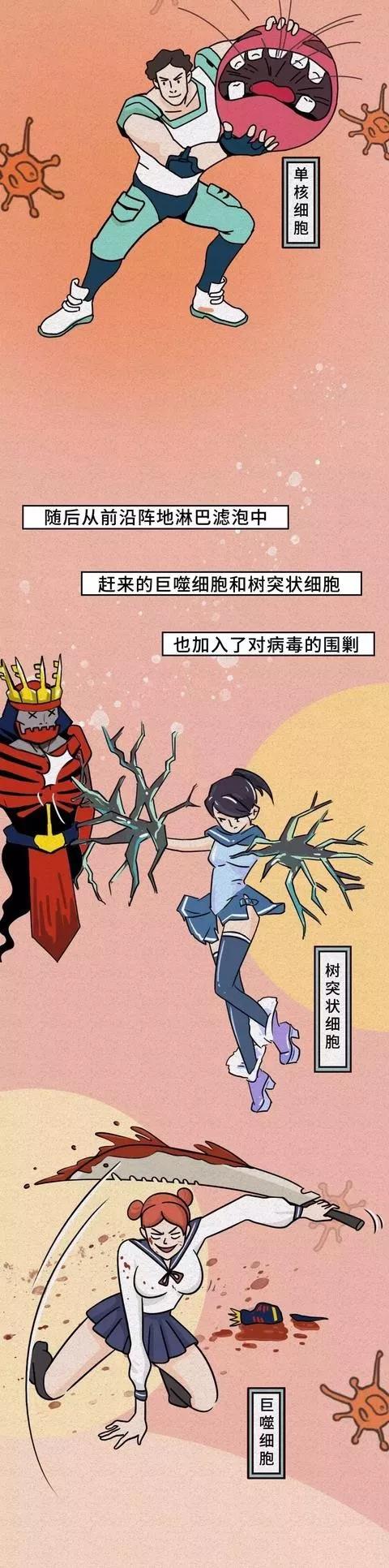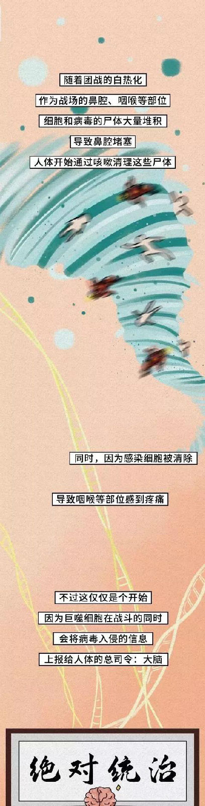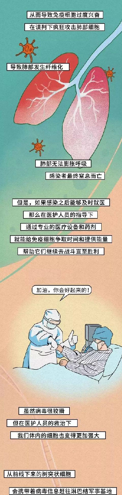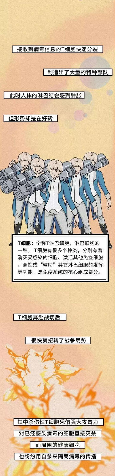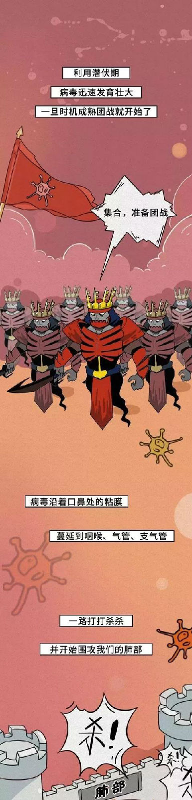 (以下漫画转自:国家应急广播-人体和病毒展开的生死搏斗)