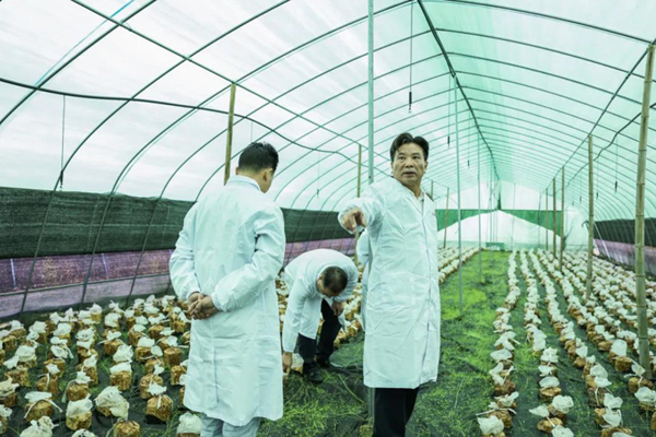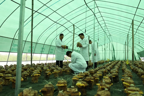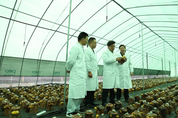 集团技术总顾问沈教授走进基地大棚,详细了解基地桑黄生长情况,重点调研桑黄种植技术、病虫害存在问题,确立科研攻关课题,并提出具体技术指导建议。