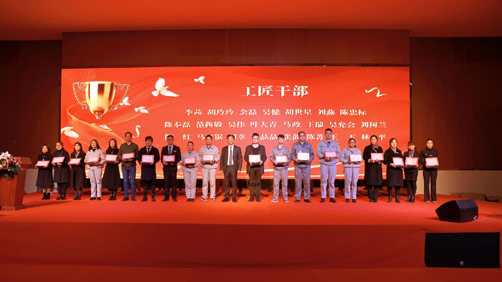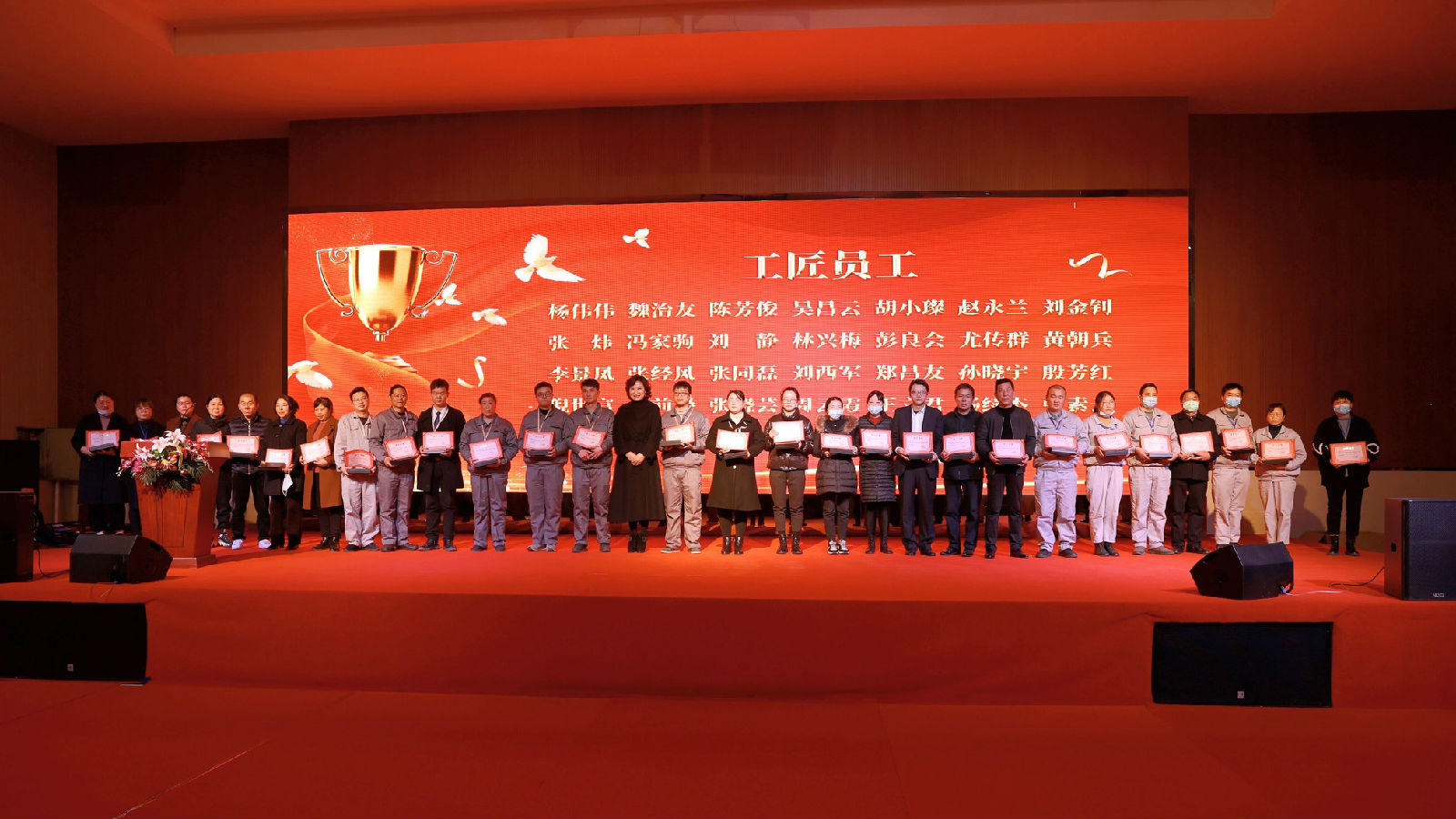 集团总裁赵欣女士为28位“工匠员工”颁发荣誉证书及奖品