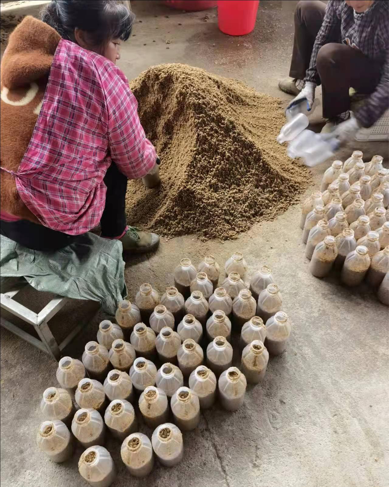 自2021年10月康美来集团下达2022年灵芝种植计划任务后,康美来工厂菌种车间加班加点生产菌种,基地负责人黄总积极行动,采伐优质树木,招聘当地农民工100多人加工菌棒,高标准推进灵芝基地生产进度。