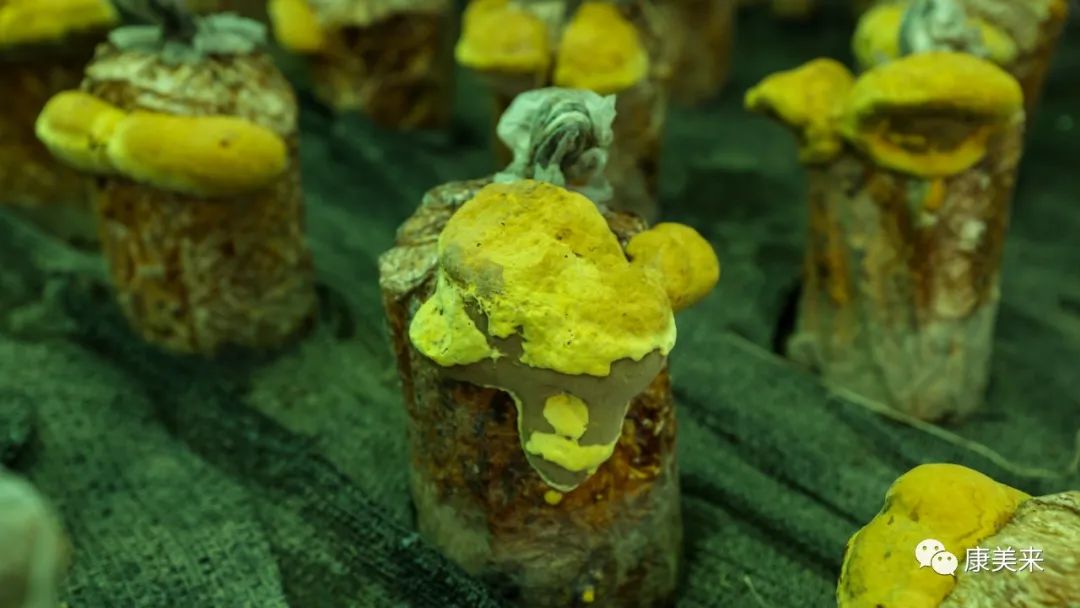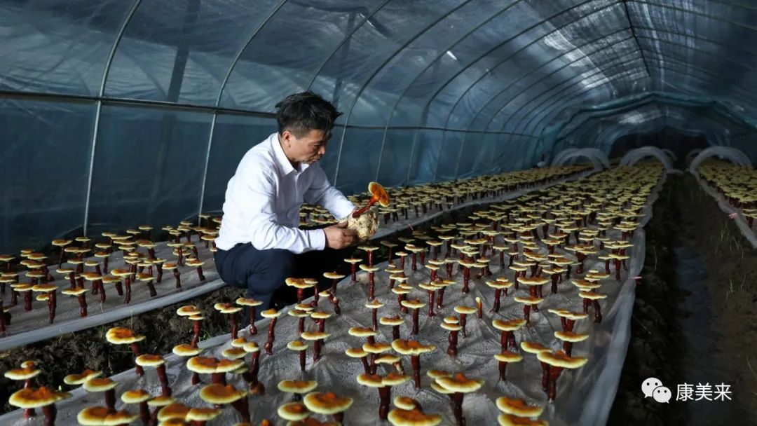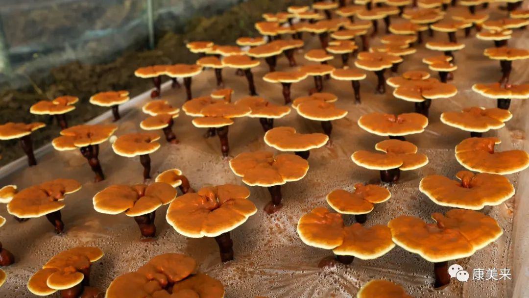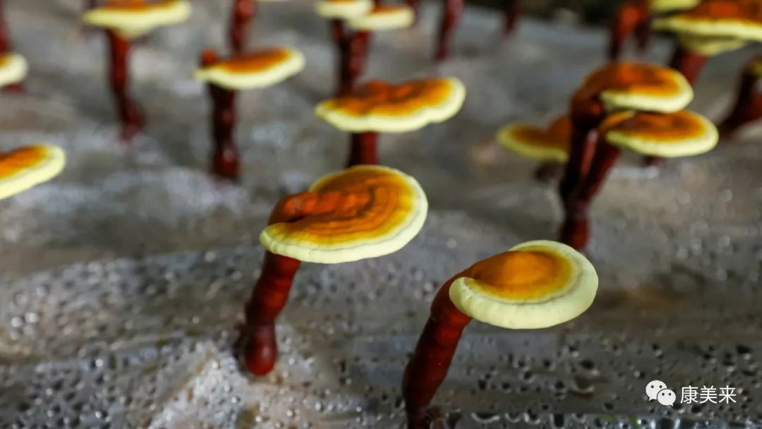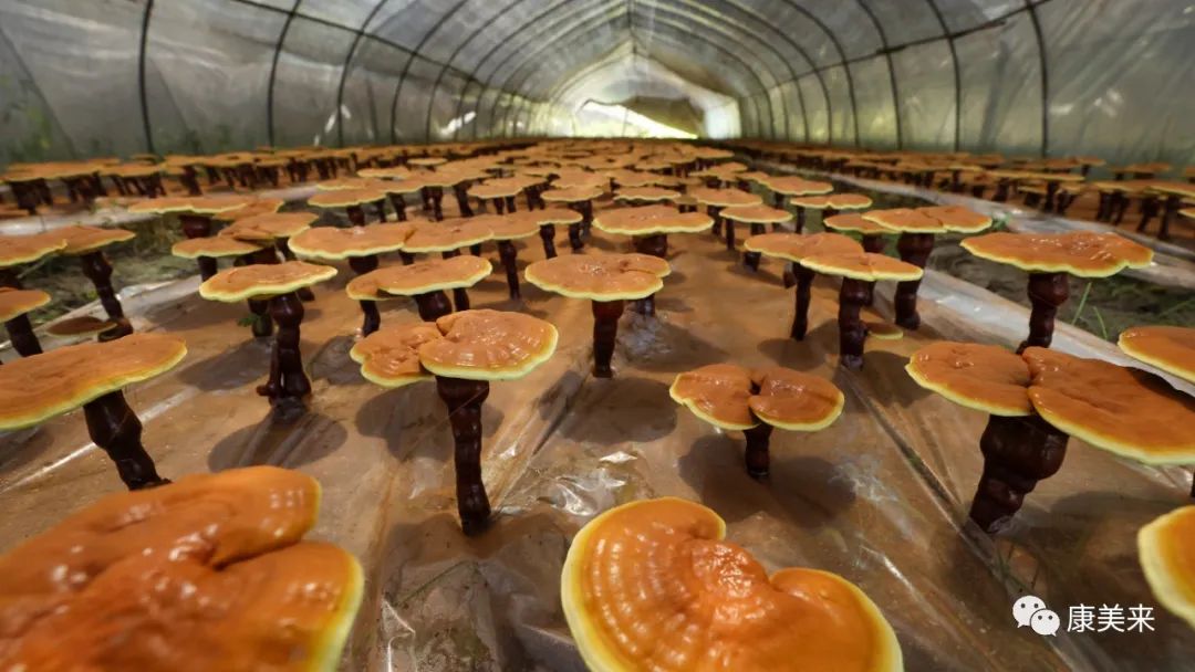 这里的灵芝下地稍晚几周,灵芝菌盖鲜艳嫩娇,一朵朵婷婷玉立,美丽可爱,亦如一朵朵彩色的祥云。