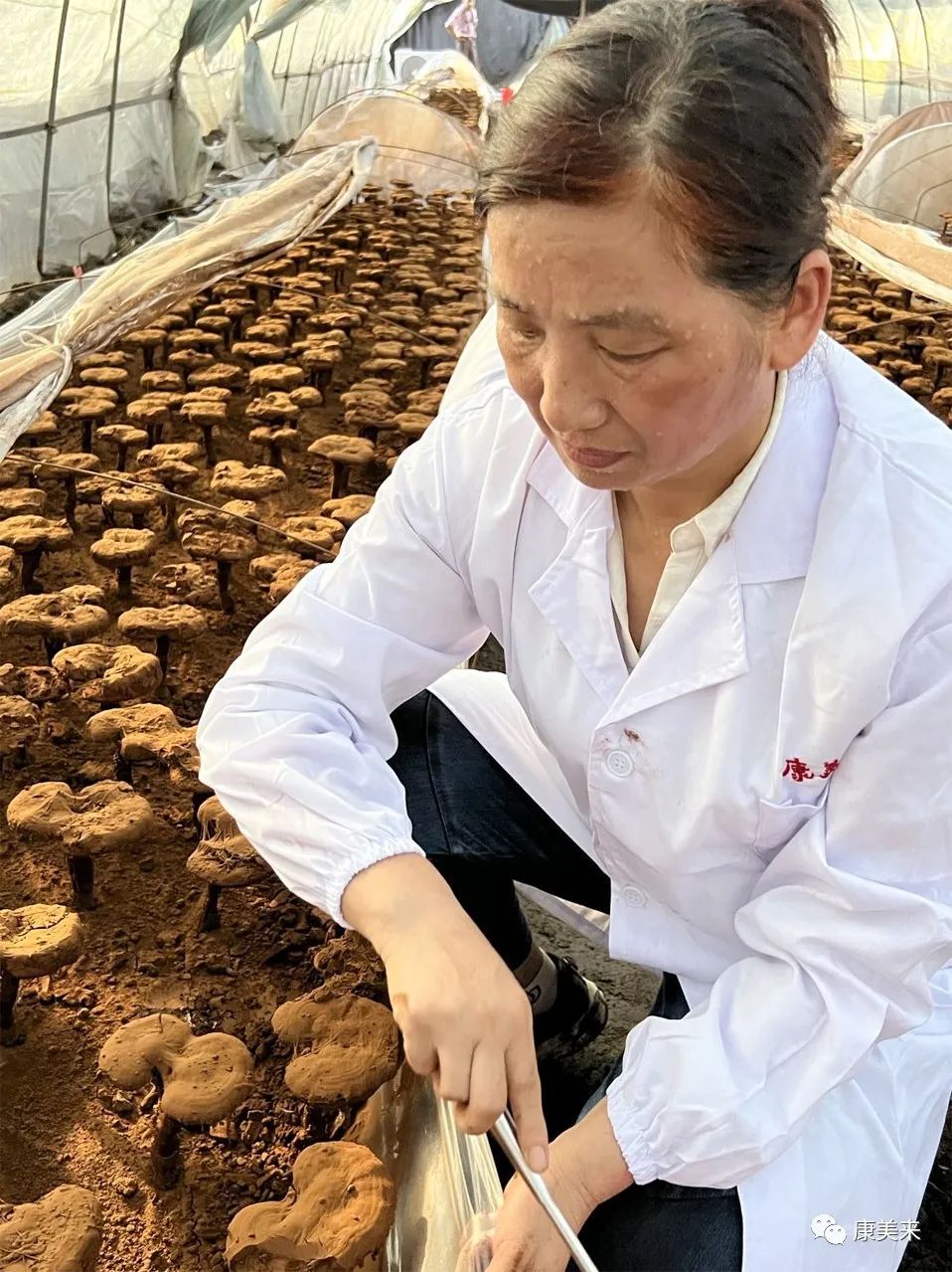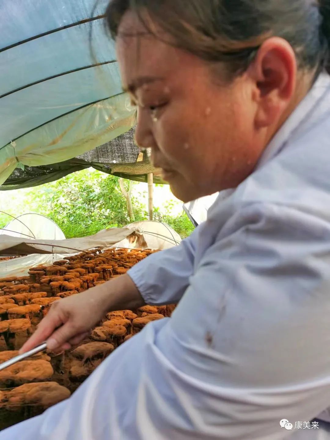 康美来集团总裁赵欣女士上山亲赴基地现场,指导采粉工作,赵总表示:康美来破壁灵芝孢子粉的核心优势首先在于控制药材源头,我们的任务就是精挑细选,采集优质的灵芝孢子粉,对消费者负责。