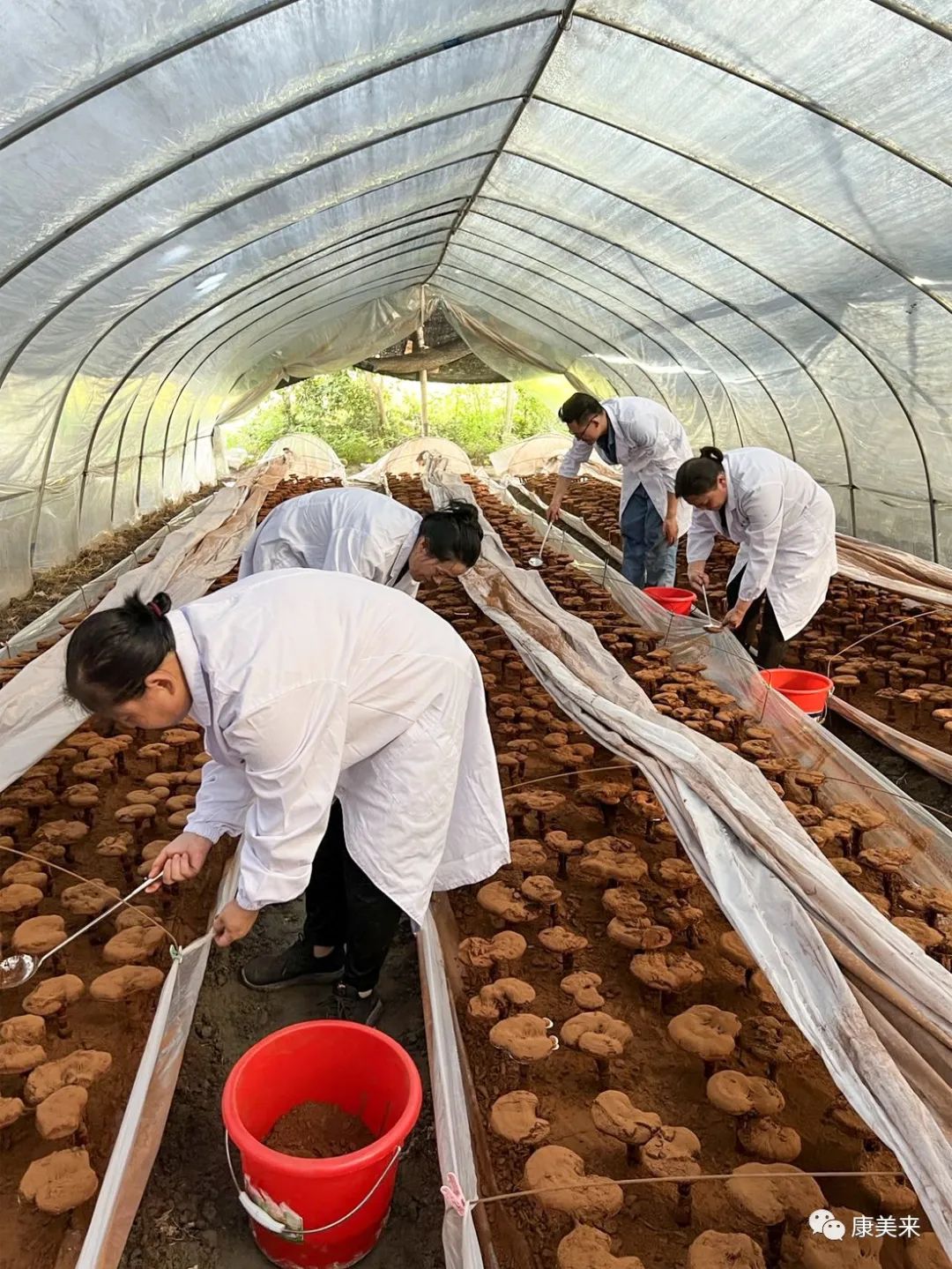 大棚内高温闷热,公司验收组员工汗流浃背,精细作业,严把药材质量关,一切都为了产品品质。
