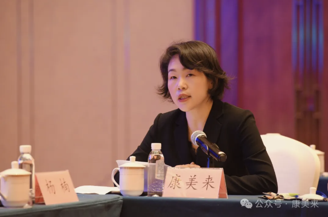 会上全省各直销企业安利、无限极、完美等代表交流发言,康美来营销总裁王莎莎代表康美来汇报工作。