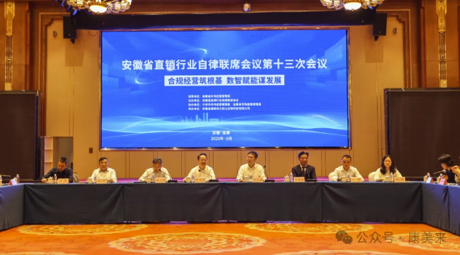 安徽省市场监督管理局党组成员、副局长何汉翔自始至终参加会议,并作重要讲话,表示省局高度重视直销行业自律联席会议的召开,高度关注各直销企业在安徽的发展,要求各直销企业严格自律,合规经营,坚守底线,维护消费者的合法权益。何副局长在讲话中,特别肯定康美来在大别山的创业精神,并希望继续为革命老区经济发展作出贡献。
