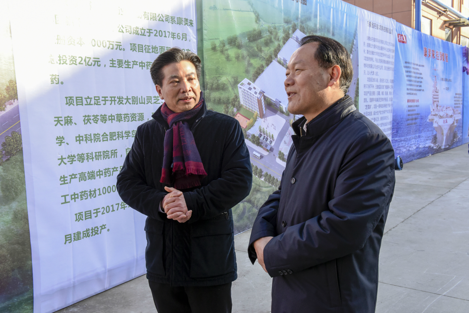 2018年1月11日上午,中共六安市委副书记、六安市人民政府代市长叶露中、常务副市长陈家本调研康美来集团。康美来集团董事长余春富向叶市长汇报了康美来集团大健康产业布局与发展规划,以及2018年集团工作目标。