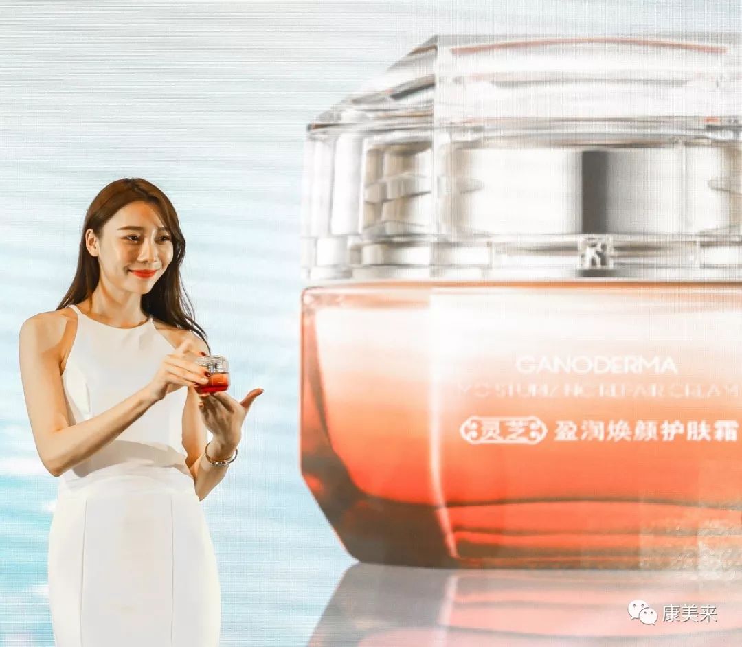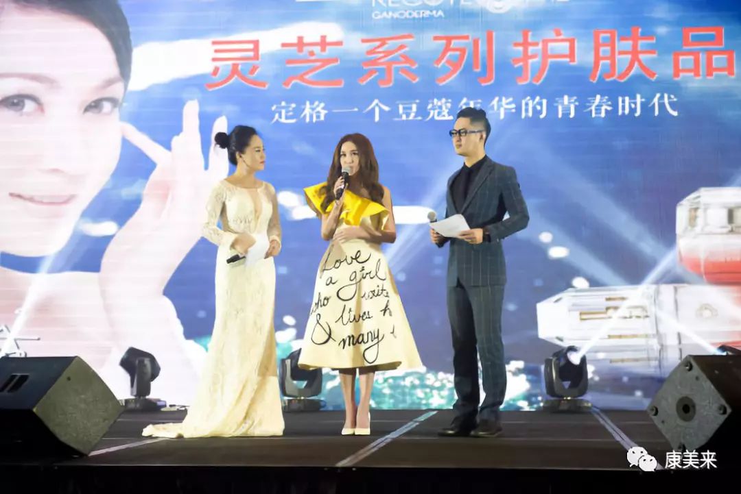 时尚女杰刘锋、沈剑宏、李倩云分别作了新品体验分享,表示康美来灵芝护肤产品优质、高端,美容效果明显。