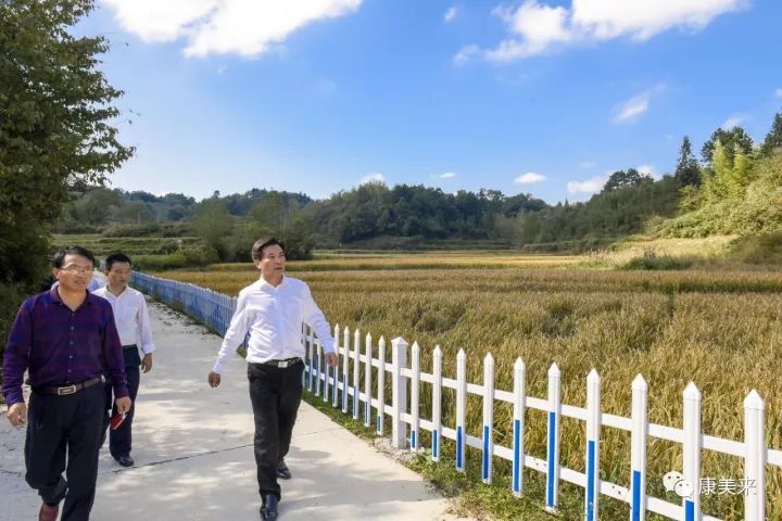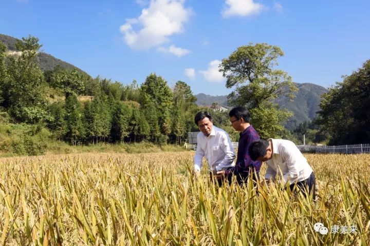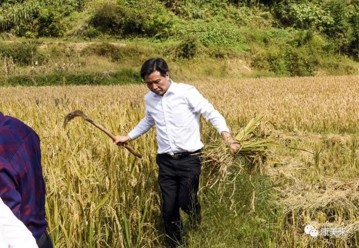 8日下午,余春富前往双河乡大畈村有机香稻基地。双河有机香稻基地位于双河乡大畈村,基地负责人叶乃兵拥有十多年有机稻种植经验,是金寨县著名种植能手。双河基地有机香稻规模300亩,周边山谷生态良好,海拔高达502米,属高寒山区。绿色的山谷,金色的稻田,饱满的谷穗,在微风中摇曳。老叶向余董汇报过两天就可以收割,正在组织人力及准备工作。余董指示,收割后,马上播种红花草,秸秆还田,提高土壤有机质水平,为明年生产打好基础。总裁助理尹维龙陪同视察。