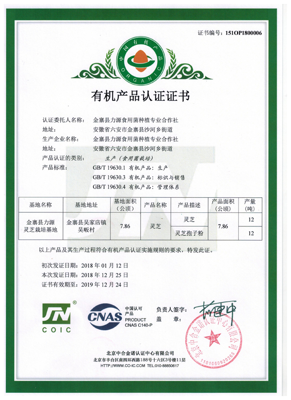 自2016年开始申请有机产品认证,经北京有机认证权威机构通过三年持续抽样检测,完全符合有机标准,并于近期正式颁发“有机产品认证证书”。