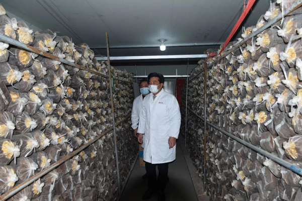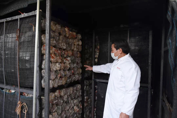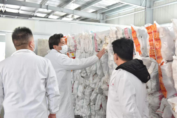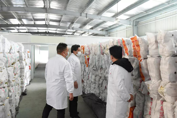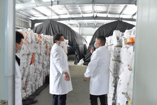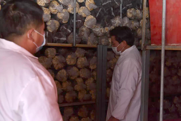 余董到基地最关心的是今年菌棒生产和养菌情况。来到新建的菌棒生产基地,基地负责人黄总介绍:完全按照公司制定药材标准生产,选用最优最合适的多年生椴木生产菌棒。