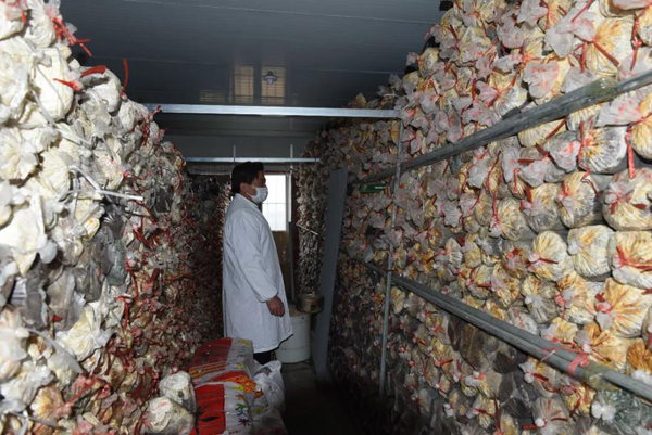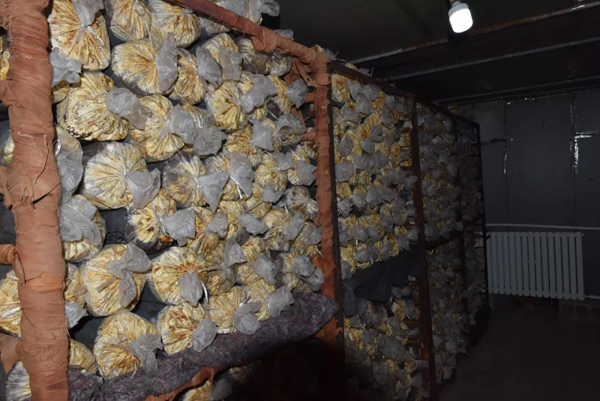 在养菌室,一排排菌棒正在养菌,基地负责人说:“这些菌棒都是去年11月--12月生产并开始接种养菌的,目前菌丝体生长情况良好。”
