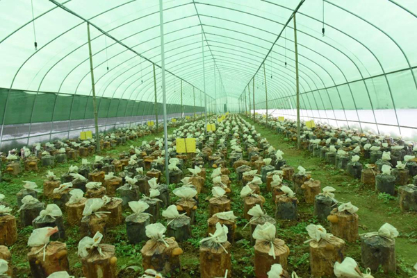 基地负责人万总夫妇已经到达药材基地等候多时,这个时节,进山的人很少。他表示:已生长两年的桑黄处于冬眠阶段,子实体金黄鲜活,在标准化的大棚里过冬,没有任何问题,今年秋天就可采收。余董和基地负责人一起研究了桑黄技术创新及生产条件问题。